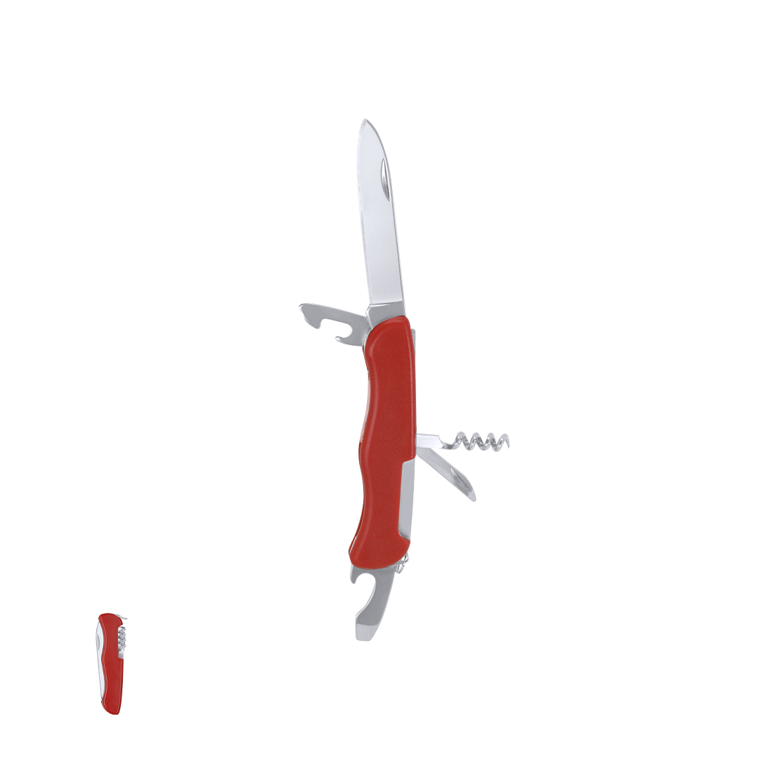 Navaja multiusos con accesorios de acero inox con 5 funciones, con recubrimiento de resistente ABS. Incluye cuchillo, punzón, sacacorchos, abrelatas y abrebotellas.   5 Funciones   Acero Inox